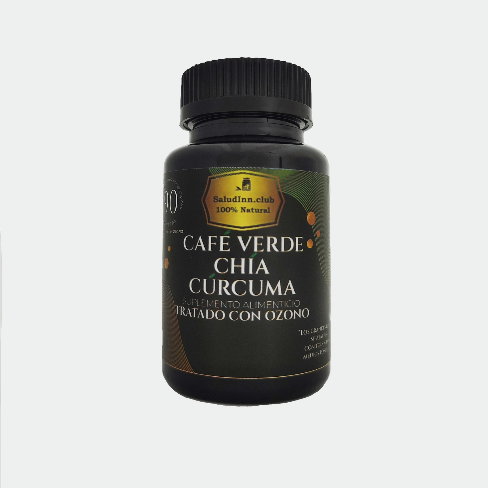 Potencia tu bienestar con el suplemento alimenticio de Café Verde, Chía y Cúrcuma tratado con ozono de SaludInn. Este bote contiene 90 cápsulas, cuidadosamente formuladas para ofrecerte una combinación única de tres superalimentos en una presentación práctica y fácil de consumir.